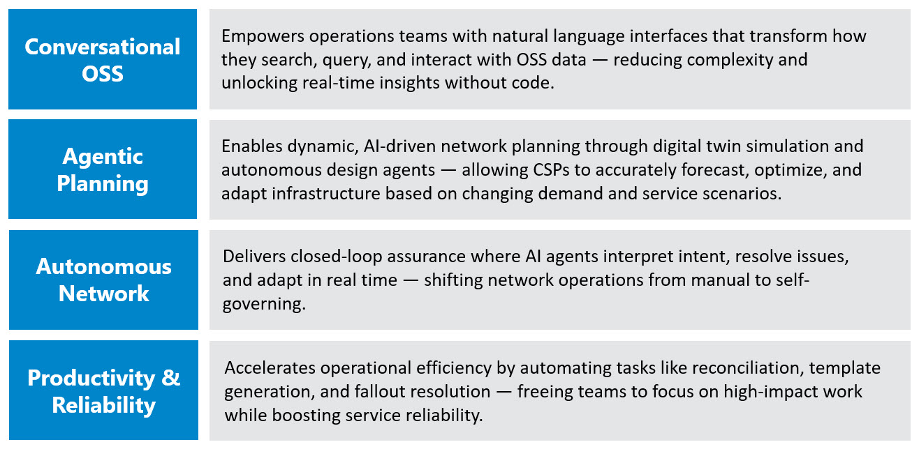 Today’s CSPs are burdened by aging OSS infrastructure — originally architected for a different era, ill-equipped to meet the demands of modern operations. While general-purpose AI platforms tout transformation promises and legacy vendors introduce AI agents, they often fall short in grasping the intricate realities of telecom networks and the operational complexity that defines them.